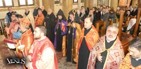 Եկեղեցւոյ զանգի հնչիւններով եկեղեցական թափօրով մուտք գործեց Առաջնորդ Սրբազան Հայրը. հանդիսաւոր Ս. Պատարագը նուիրուած էր հայ հաւատքի եւ հայրենիքի անձնուրաց ու քաջարի հոգեւորականներուն ու անոնց պարագլուխը հանդիսացող Սրբոց Ղեւոնդեանց նահատակներու խնկելի յիշատակին. Դպրաց դասի երգեցիկ խումբը ոգեւորութեամբ ու ներդաշնակութեամբ կ՛երգէին Ս. Պատարագը: Ս. Պատարագի ընթացքին առինքնող երեւոյթ մըն էր եկեղեցական թափօրը եւ ուր քահանայ հայրեր քահանայական սաղաւարտներով, վառ մոմերով, խորհրդաւոր կերպով թափօր դարձան, յայտնելով իրենց հաւատքի առկայծ ճրագը, յընթացս Ս. եւ անմահ Պատարագին Առաջնորդ Սըրբազան Հայրը հանգամանօրէն ծանրացաւ Ս. Ղեւոնդեանց աննկուն հաւատքին, վեր առնելով Պետրոս առաքեալի ընդհանրական նամակի խօսքերը. «փորձուած ձեր հաւատքը շատ աւելի թանկագին է քան կորստական ոսկին, որ կրակի մէջ կը փորձուի, որուն համար ալ երբ Յիսուս Քրիստոս յայտնըւի պիտի գովէ ձեզ ու փառքի ու պատիւի արժանացնէ» (Ա. Պետրոս Ա.7):